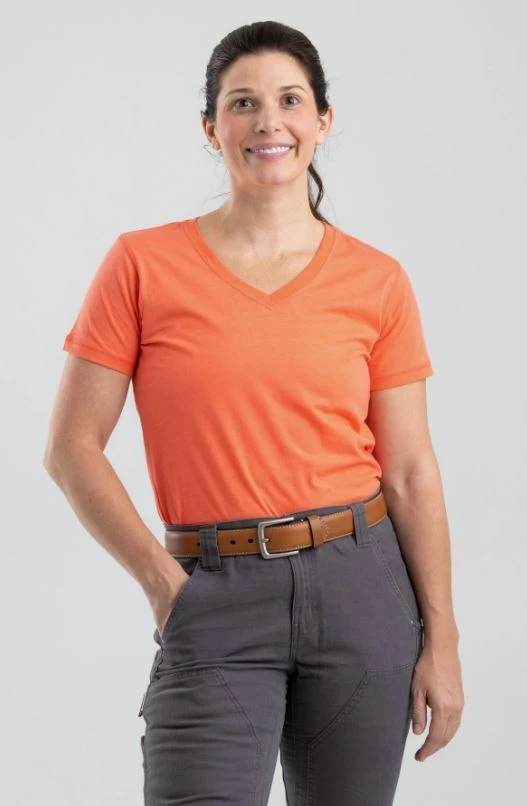 This Berne Women’s Lightweight Performance Short Sleeve V-Neck T-Shirt keeps you dry and comfortable and fits great. These t-shirts feature stain release technology to help you stay clean on those tough jobs. The moisture wicking technology helps you stay dry all throughout the day.