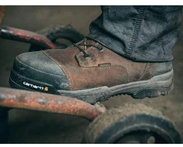 - Composite toe protects against impact and compression hazards and meets ASTM 2413-18 standards