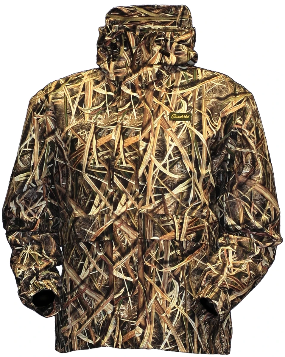 The Decoy Jacket is perfect for any waterfowl hunter! This uninsulated waterproof/breathable shell is made from our fast drying, tough StormHide fabric. Two large zippered cargo pockets hold lots of shells and seal shut to keep them dry. The internal mesh lining slides on easy and adds comfort to your internal layer. An attached hood is adjustable with a built –in visor and the draw cord in the waist seals out wind and water.