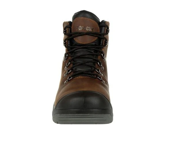 Ready to take on the day, these rugged composite toe work boots are prepared for anything. Built with tough, oil and slip resistant rubber/ PU outsoles, internal met guards, and high abrasion toe caps for additional durability and protection. Wet environments are not a problem with all around waterproofing by Rocky, guaranteed to keep your feet dry when you need it the most. These distinct boots are five inches in height and have a direct attach construction. Take on the day with comfort and protection with the WORKSMART collection by Rocky.