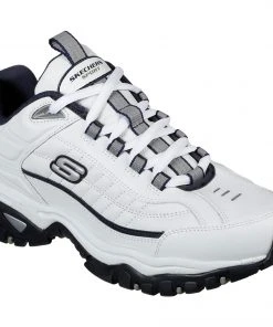 Hit the track with breakneck speed in the SKECHERS Energy – After Burn shoe. Smooth leather upper in a lace up sporty athletic training sneaker with stitching and overlay accents.