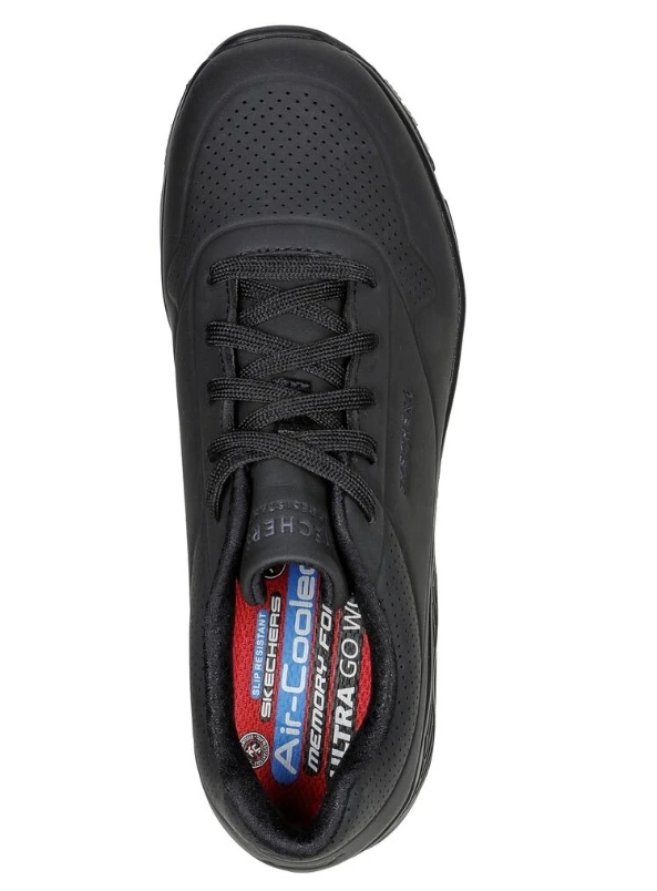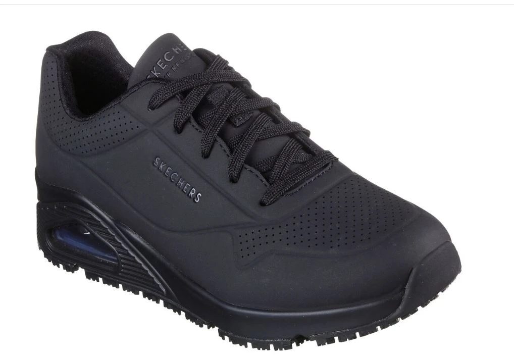 A favorite style arrives in comfort and safety with Skechers Work Relaxed Fit®: Uno SR. This slip-resistant work design features a durable perforated synthetic durabuck upper with a Skechers Air-Cooled Memory Foam® insole and Skech-Air® visible air-cushioned midsole.