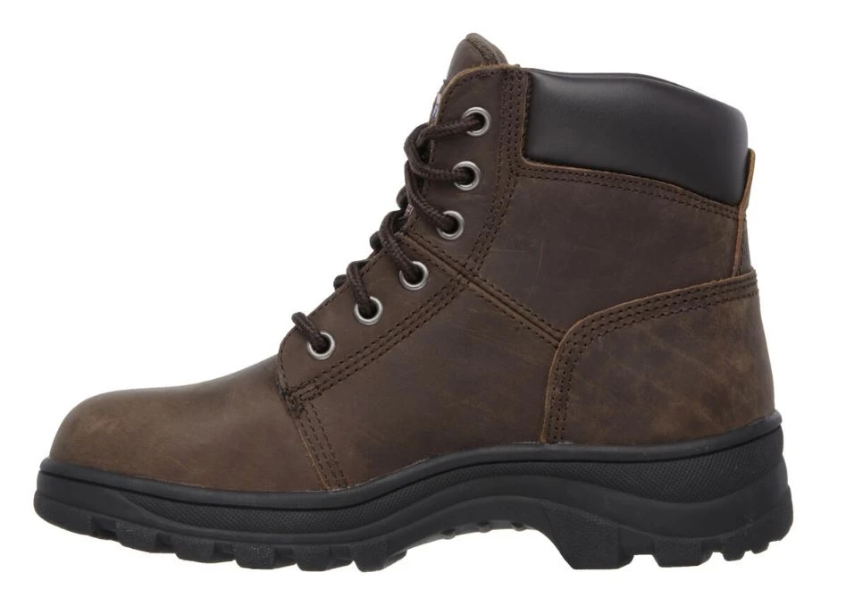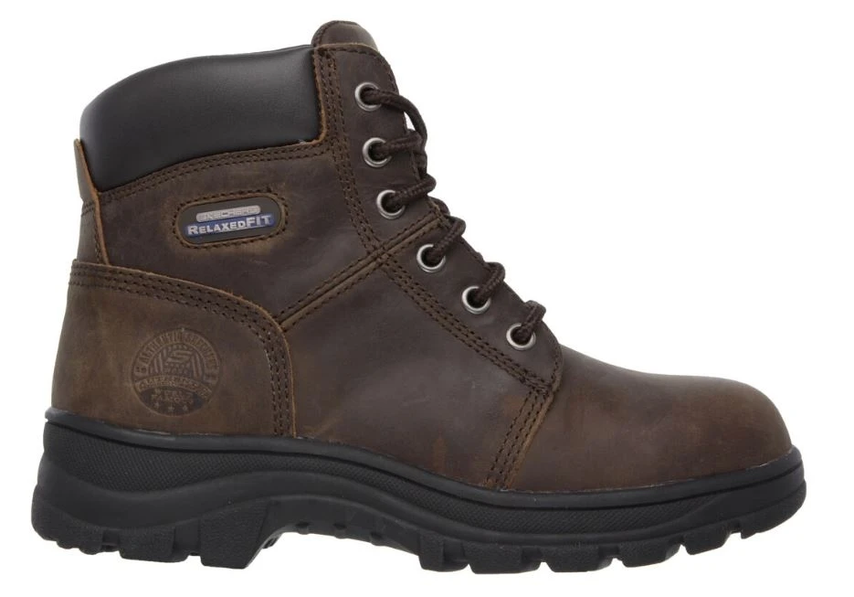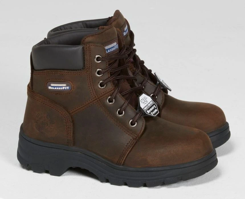 Keep comfortable and safe wearing Skechers Work Relaxed Fit: Workshire – Peril ST. This work boot features a lace-up leather upper with a Skechers Memory Foam™ Gel-Infused insole and a steel toe.