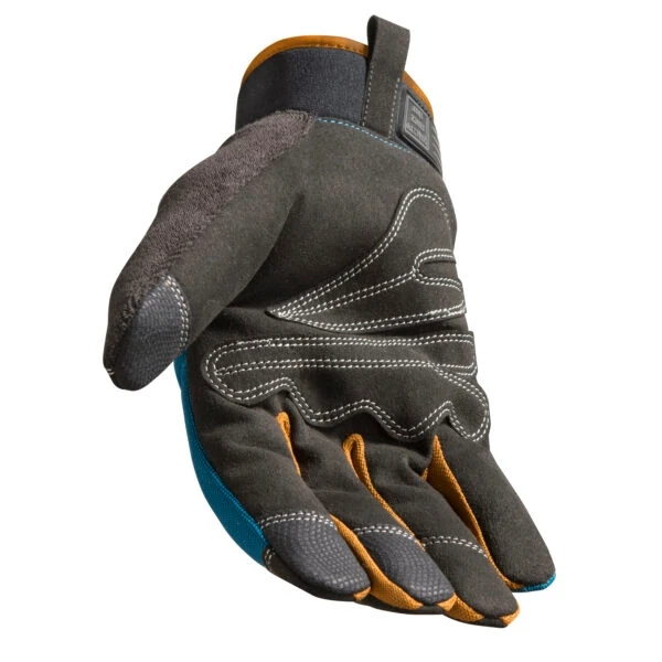 Water-resistant synthetic leather palm. Water-resistant stretch spandex back. Extra wear palm patch. Padded knuckle area for protection. Adjustable neoprene wrist band. Fleece-lined with 70-gram 3M™ Thinsulate™ insulation. Terry thumb back brow wipe.