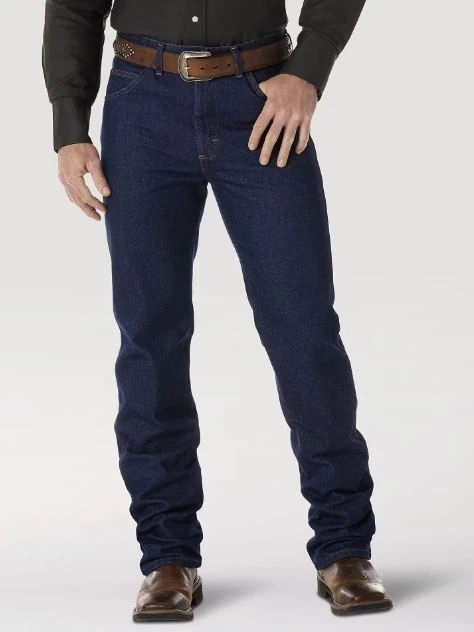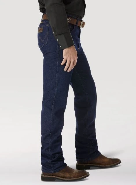 Once you find the perfect fit, there’s just no going back. These Cowboy Cut® slim fit jeans place a modern spin on our most popular Western style. With 20% longer lasting denim and a more comfortable waist, the Wrangler® Cowboy Cut® men’s jeans are guaranteed to get you where you need to go and keep you feeling comfortable. Our Premium Performance Cowboy Cut® slim fit jeans come fully equipped with all the authentically Western details you know and love, including our signature five-pocket styling, deep front pockets, a slim seat, smooth seams, and a full opening from the knee down that fits perfectly over a favorite pair of boots.