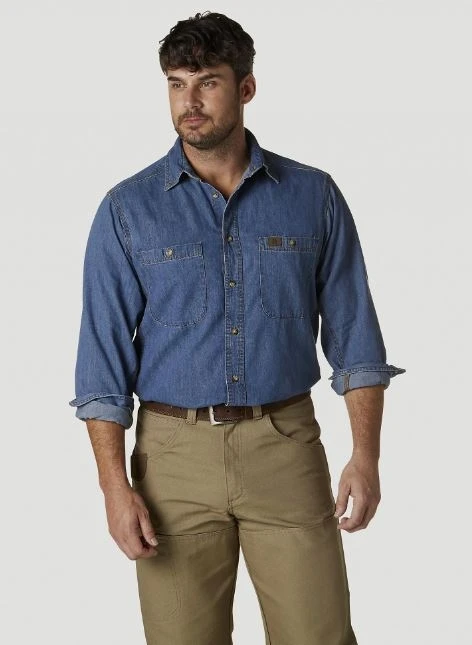 Nothing wears quite like our RIGGS WORKWEAR denim work shirt. Trust our exclusive room2move fit for comfort and side gusset detail for greater range of motion. Whatever the workday holds, this popular relaxed fit shirt is ready to move with you.